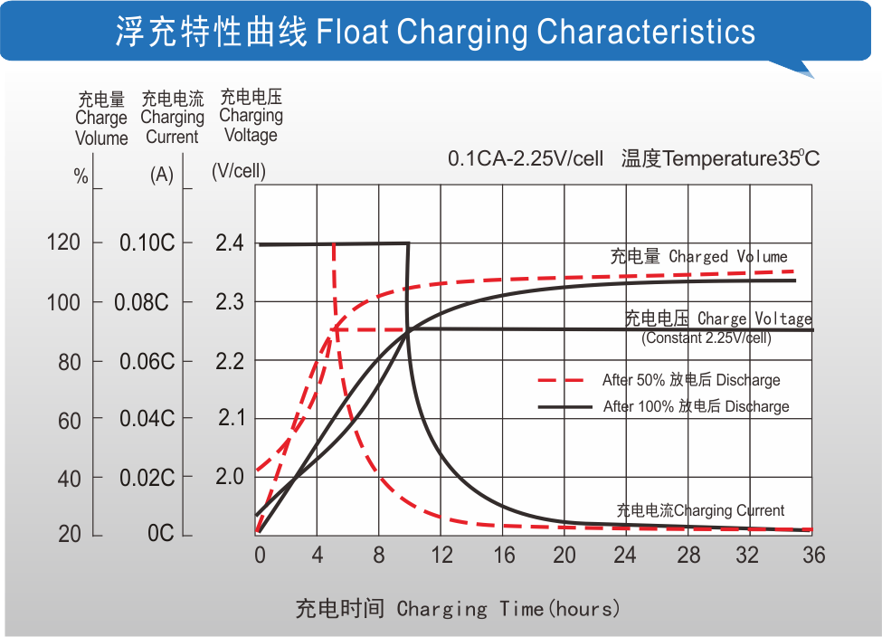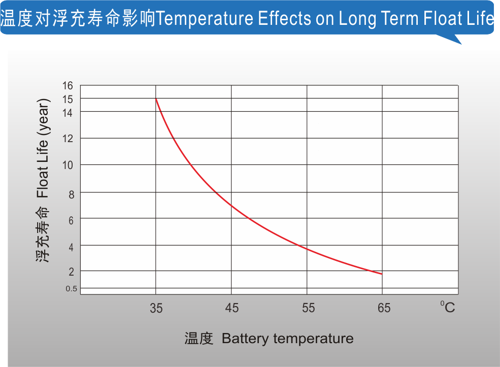 高温使用寿命长,长期在35℃高温下工作,可以达到常规AGM电池25℃下的浮充使用寿命;